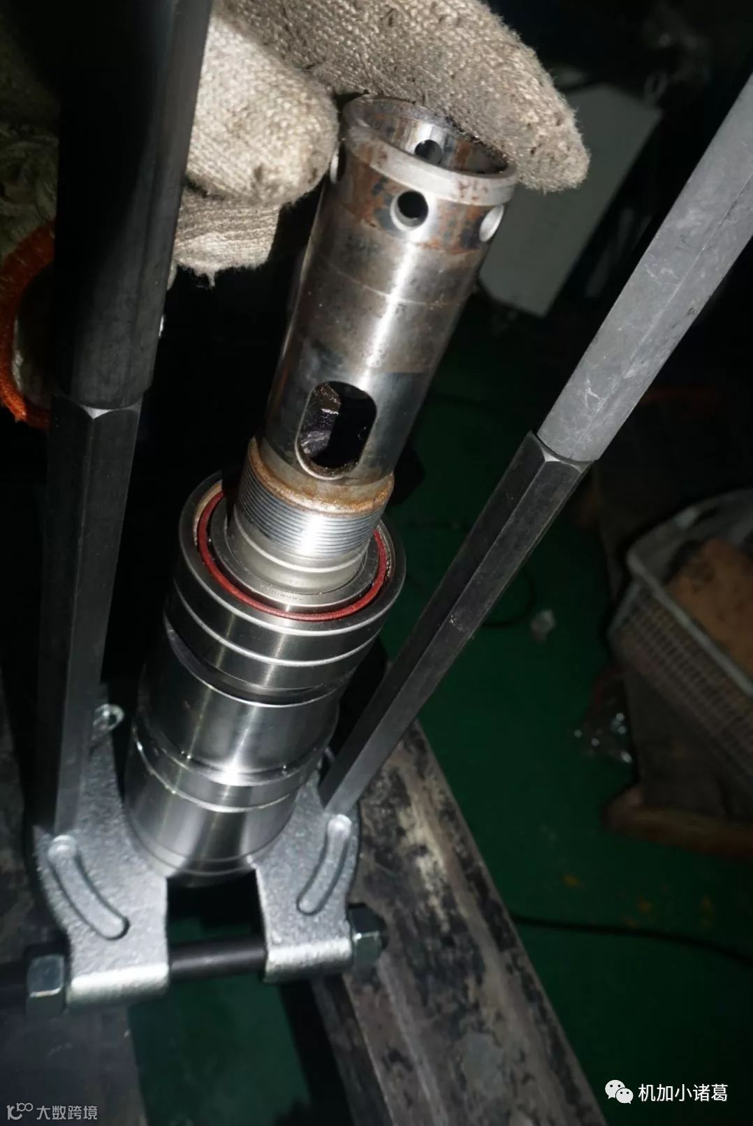 这一套轴承拉拔装置适用于客户现场作业,优点是搬运比较轻便。把所有零件拆完以后把轴芯拿去磨锥孔,并检查其内外径的跳动和直线度等。