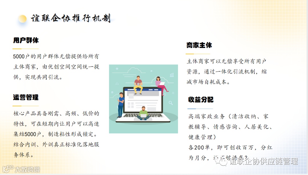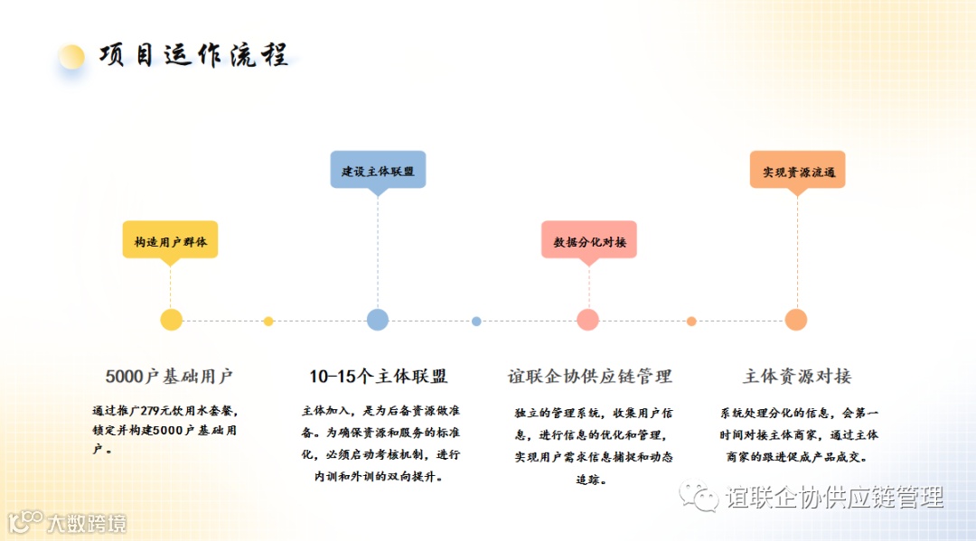 云南谊联企协供应链管理有限公司,成立于2021年9月22日,公司主营居家刚需性资源的信息化对接、定制化服务和智能化供配,经过长达14个月的努力,现公司定制化服务的居家客户累计高达3600余户,同盟合作商家总计13家,群体客户机构200余户。现公司聘请到资深软件工程师加盟合作,参与“谊联企协供应链管理”平台系统的研发,共同推动智能化合作型配送中心项目,为下一步云南谊联企协供应链管理有限公司体系建设发展实现数据的精准化、高速化、高效化及全能化打下了了扎实的基础。现公司将公司所有的配送流量下发至市场,并向市场开启了自主创业窗口,为寻求下一步市场合作开出了最大权限,力求实现全民创业的伟大创举!