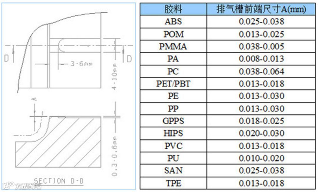3. 对于复杂几何形状的产品模具,排气槽的开设,最好在几次试模后再去断定。