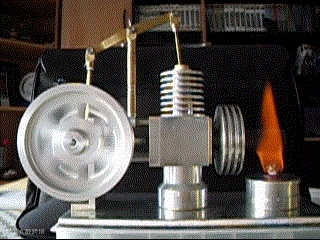斯特林发动机是通过气体受热膨胀、遇冷压缩而产生动力的。这是一种外燃发动机,使燃料连续地燃烧,蒸发的膨胀氢气(或氦)作为动力气体使活塞运动,膨胀气体在冷气室冷却,反复地进行这样的循环过程。