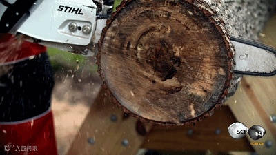 但电锯的威力并不是来自切齿,而是来自薄薄的被叫做“导向杆”的金属片,链条就缠在它边缘。导向杆必须坚固,才能支持高速运动,但也得足够轻,因为伐木工人要提一天。