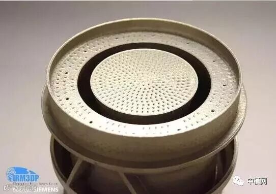 图:西门子开发和测试的SGT-A05燃气轮机的3D打印干式低排放(DLE)预混合器。