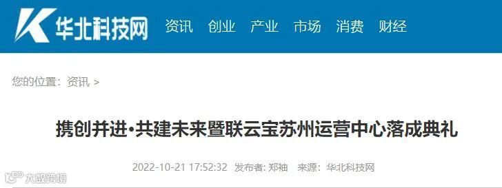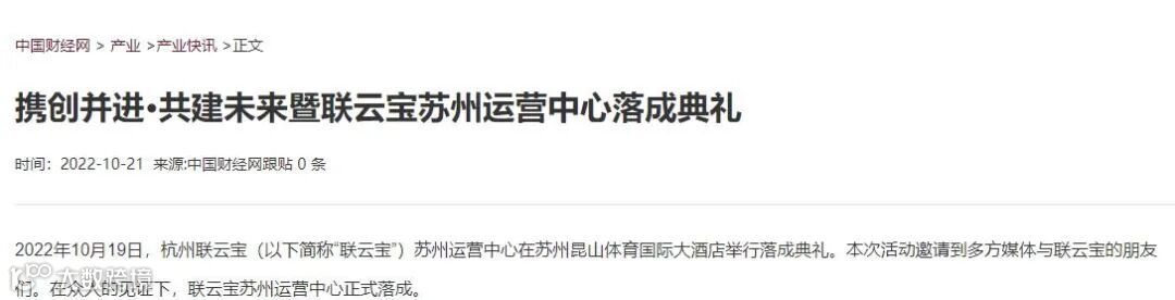 2022年10月19日,以“携创并进 共建未来”为主题的联云宝苏州运营中心落成典礼成功举办,受到凤凰网、中国财经网等多家媒体关注,快来了解一下吧!