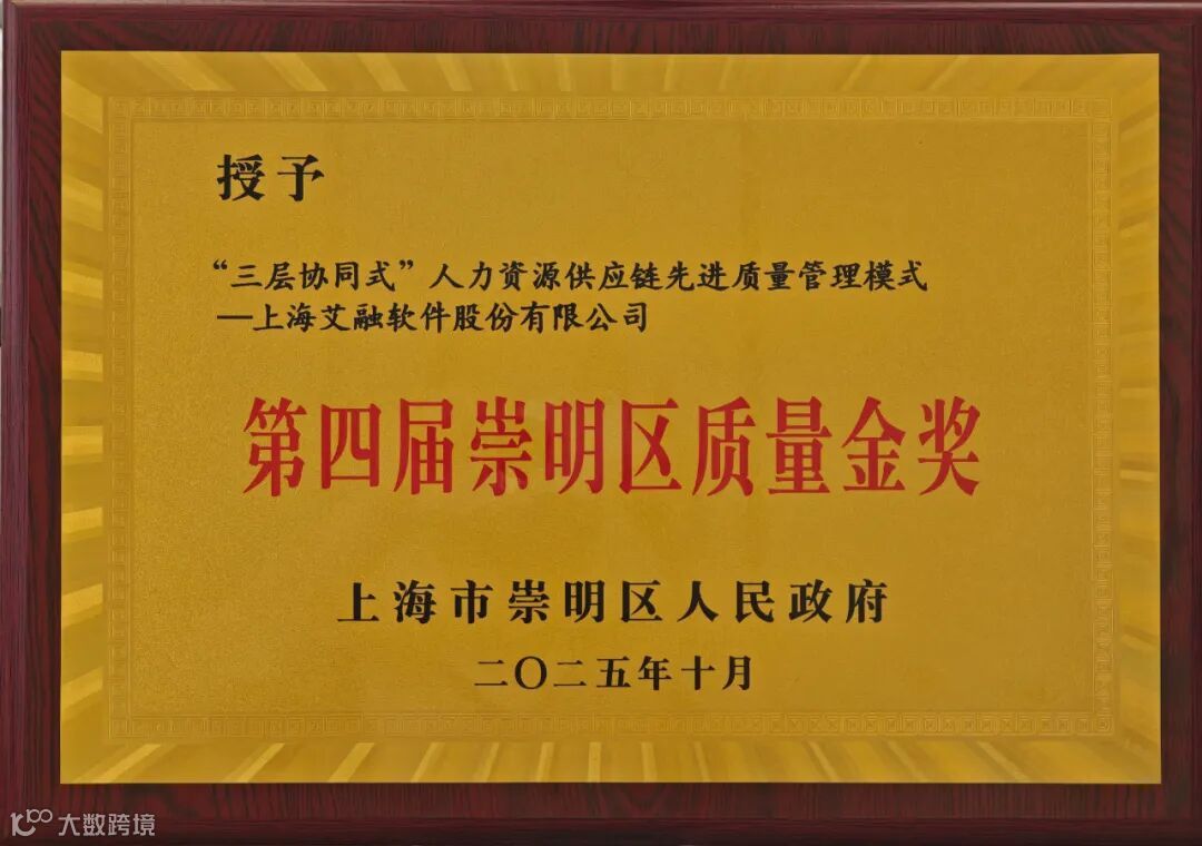 2025年11月10日,上海艾融软件股份有限公司在崇明区质量大会上,荣膺第四届崇明区质量金奖。