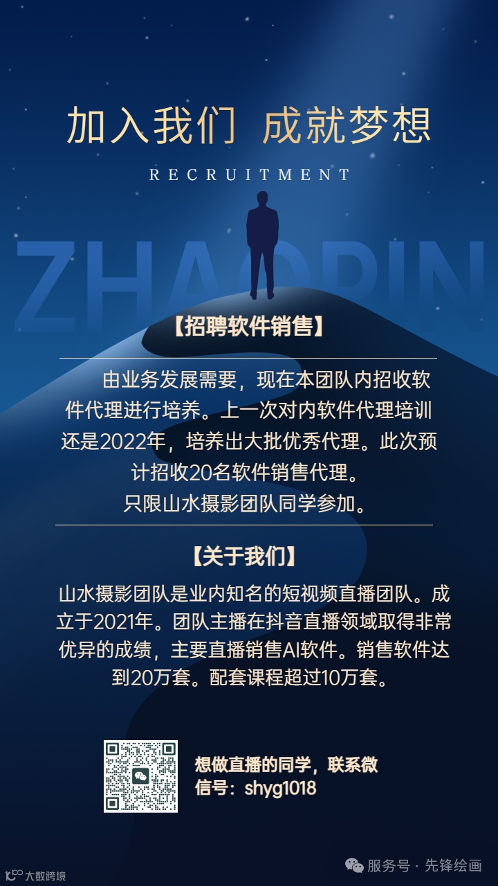 山水摄影团队招聘软件销售代理啦!加入我们成就梦想!