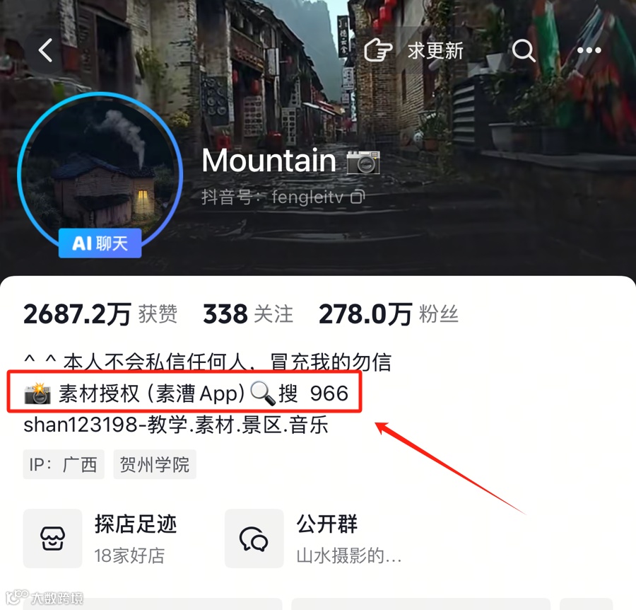 “素材授权请到素漕APP搜索「XXX」(您的ID)”