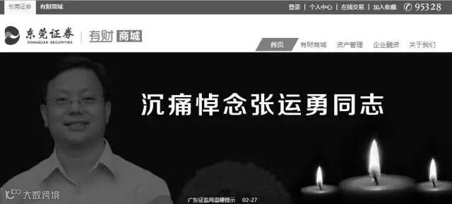 2017年2月26日,东莞证券在《东莞日报》上发布讣告称,东莞证券董事长兼党委书记张运勇因病医治无效,于2月25日凌晨0时16分去世,享年54岁。