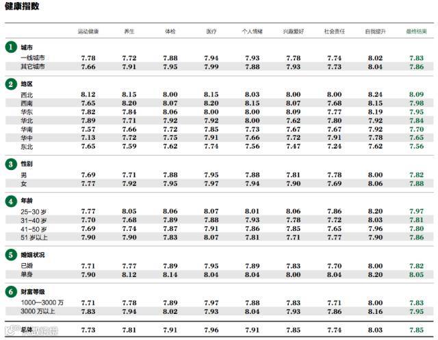 该《白皮书》显示,中国高净值人群总体健康满意度7.85分(10为满分),其中身体健康7.39分,不如心理健康8分。