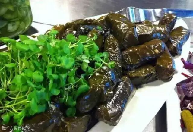 希腊粽Dolma是粽子的意思,用煮过的葡萄叶包裹,我们国内的粽子一般用的是箬叶或者苇叶,而希腊是用葡萄的叶子,Dolma里面是米和各种配料,看起来和中国粽子有几分相似,但希腊粽可以直接入口,和葡萄叶一起吃,味道酸爽,开胃消食。