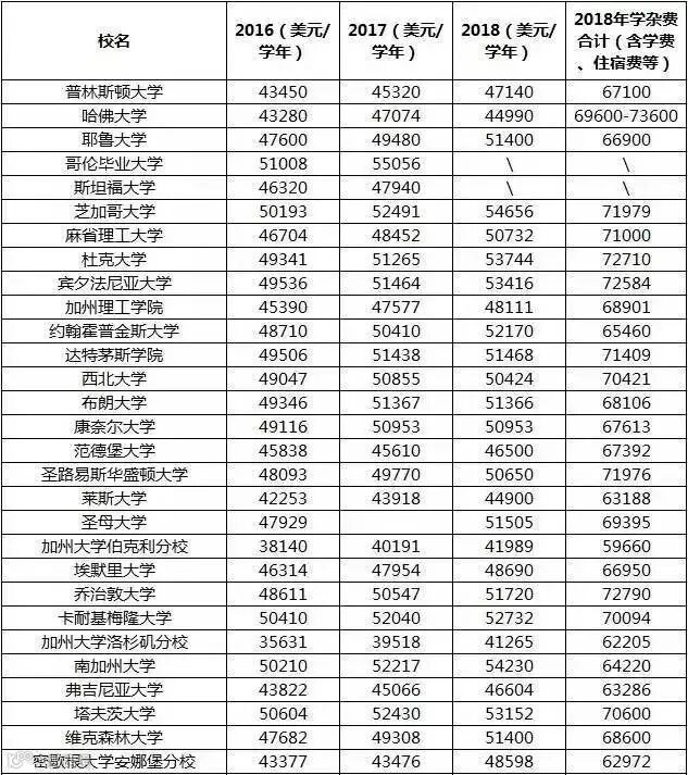 那么经过今年的再次调价,我们一向推崇的美国顶尖名校的学费,现在是多少了呢?今天小慧在部分大学官网上查了一遍,理出以下数据: