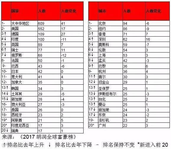 在上榜的十亿美金富豪中,大中华地区以609位第二年领先于552位的美国。大中华区和美国拥有全球一半的十亿美金富豪。