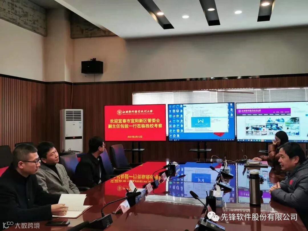 市宜阳新区管委会副主任包锐、张苗辉,宜春市数字经济运营公司首席技术官韩雄等领导一行考察组的考察,先锋软件集团副总裁汪志坚,先锋软件副总经理周明华等陪同接待。