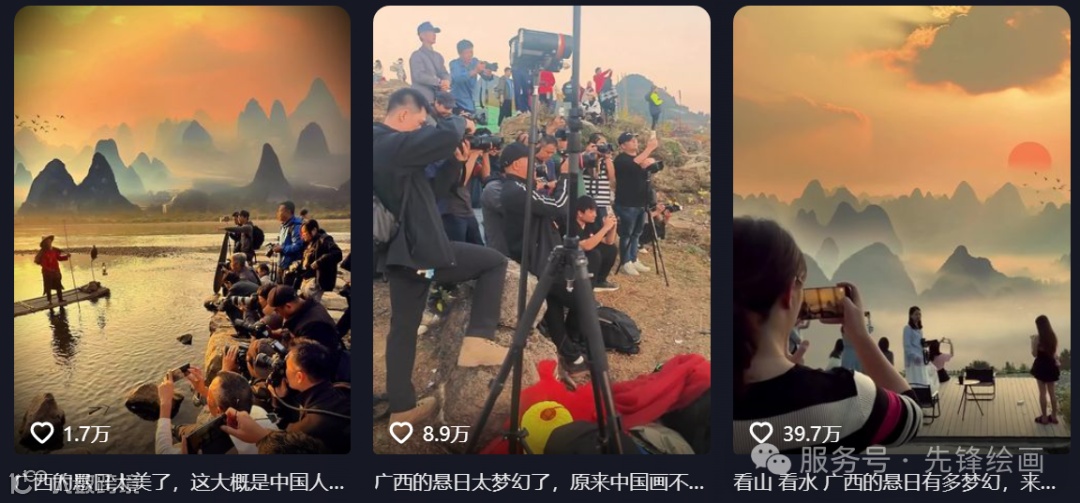 《悬日》这类作品本月很多作者都做爆了。最高做到了39.7万点赞,同学们到抖音搜索:“广西悬日太美了” 标题就可以看到大量这样的作品。