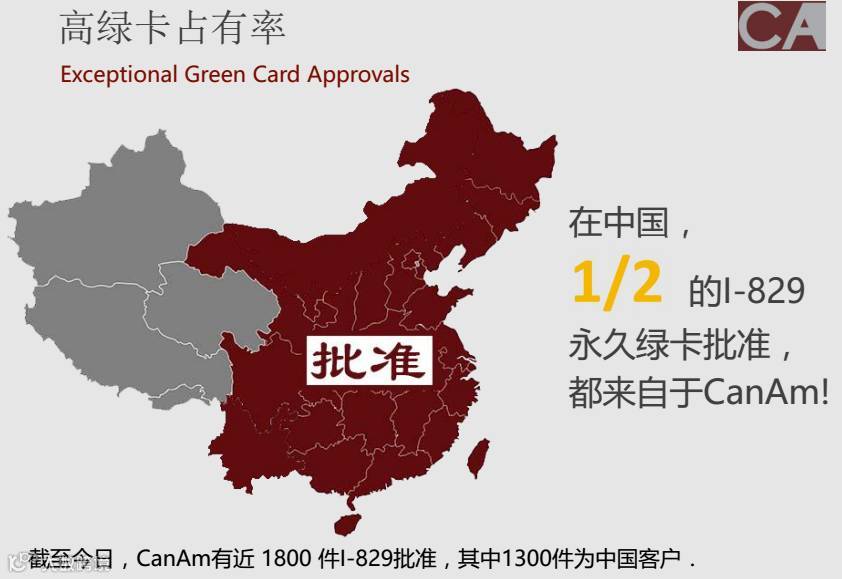 在中国,二分一的I-829永久绿卡批准都来自CanAm!