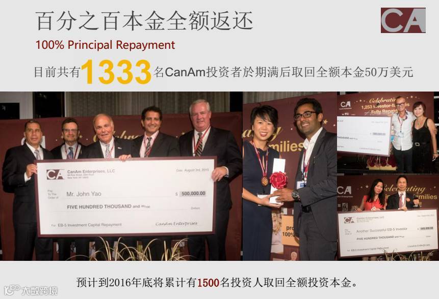 百分之百本金全额返还,目前共有1333名CanAm投资者于期满后取回50万美元本金。