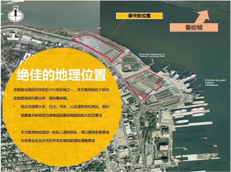 该项目坐落于纽约的绝佳水岸,坐落于纽约史泰登岛纽约港北岸,面向曼哈顿。项目完工后,纽约观景摩天轮将成为继自由女神像、帝国大厦后另一个纽约市重要观光地标。对纽约港和纽约市的整体旅游业具有变革性意义。