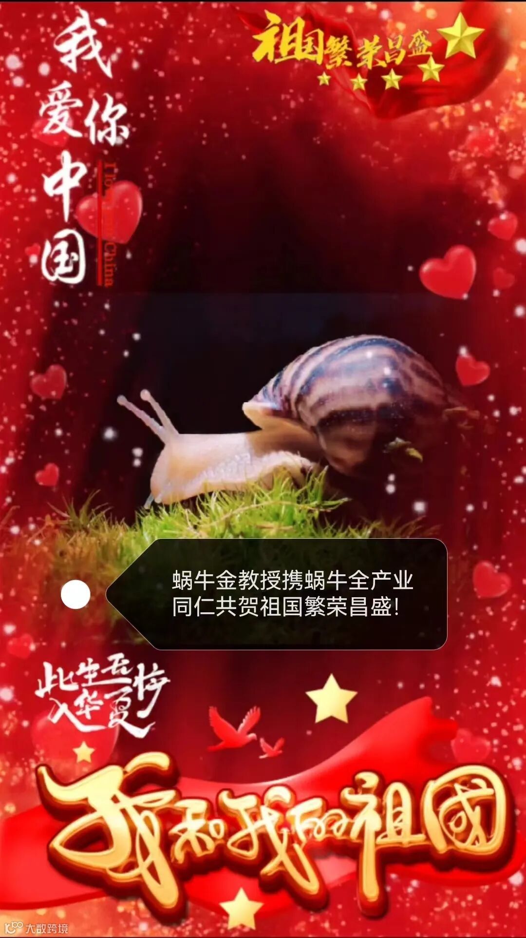 1、全国各蜗牛产业基地、各蜗牛产业企业悬挂国旗,热烈庆祝中华人民共和国七十五华诞。