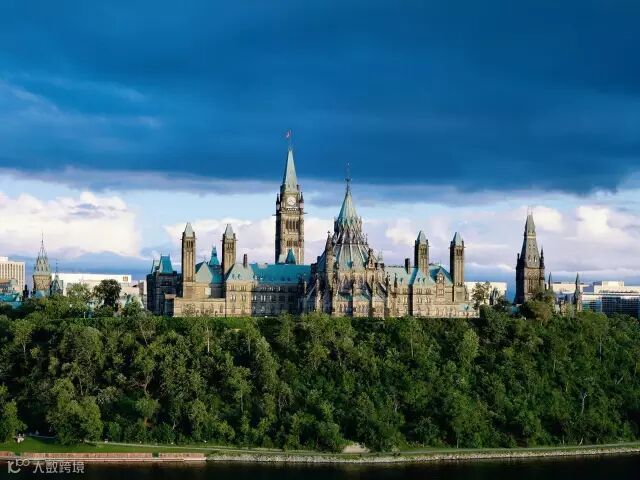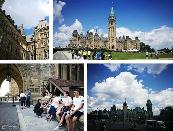 下午,我们的行程计划就是参观国会山,了解加拿大的行政制度和历史变迁。坐落在渥太华河畔国会山的国会大厦是渥太华著名的建筑群。中央有陈设着加拿大各省标志的大厅和一个高88.7米的和平塔,塔顶有个带着53个铃铛的钟琴,塔内有战争纪念碑。塔的左、右分别是众议院和参议院,后面是规模宏大的国会图书馆。