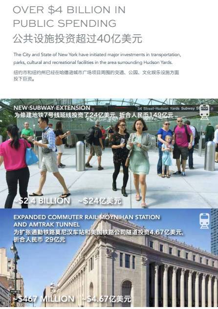 哈德逊城市广场覆盖了曼哈顿中城第十大道至西侧高速公路之间30街至34街的范围,集15座大楼、购物中心、文化空间、学校及城市公共空间于一体,占地28英亩(170亩)。为此,纽约政府已经花费了40亿美元完善附近的设施,7号线已经延伸至此。将为在此周边的居民和在此生活的员工以及访客提供了无可匹敌的配套设施以及便利的交通。