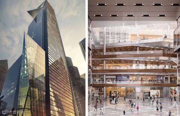 而室内零售商场40%面积将由尼曼高级百货旗舰店入驻其中,尼曼高级百货公司是一家在美国有百年历史、主营奢侈品的新潮高档百货商店。尼曼将会占用哈德逊城市广场购物中心的最高三层。该购物中心共有七层,百万平方英尺的零售空间,预计年销售收入将达到十亿美金。