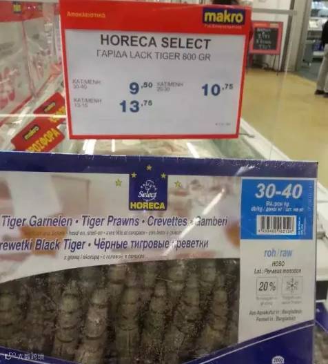 鲜冰虾与新鲜9截虾一个价 都在10欧元上下。