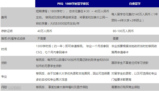 3. 时间快费用低:一年半课程。比起读大学要4-5 年时间,仅学费就8-12 万加币,这个PEQ项目从最初申请直到学生获得加拿大绿卡整个过程仅需 6--8万加币