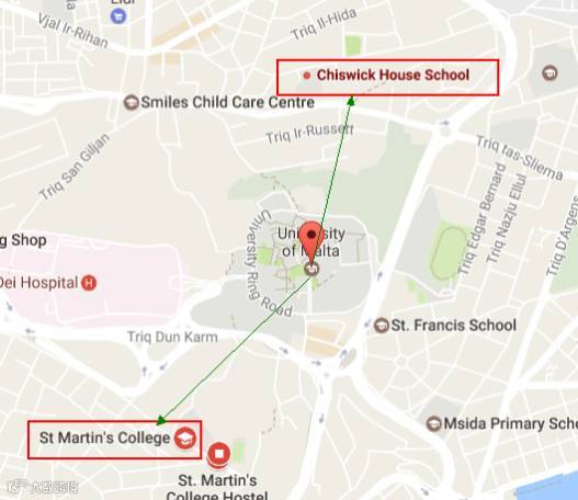 戚斯维克豪斯学校圣马丁学院,创办于1905年,至今已有111年的历史。现在已成为斯利玛地区教学卓越的学校。能够为2岁半——18岁的幼儿、儿童、青少年提供优质、安全、并充满爱的教育。学校分为两个校区戚斯维克豪斯学校圣和圣马丁学院,两个校园以马耳他大学为中心,分别位于其北边和西南方向。距离首都瓦莱塔、城市斯利玛、圣朱利安、卢卡机场、马耳他大学十分近,车程在10分钟以内。