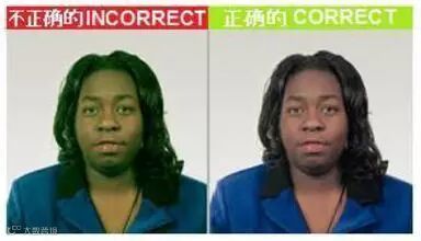 4、可以化妆或佩带假发,但不能遮盖自然容貌;因为宗教原因佩戴头巾的,头巾不被遮盖脸部。