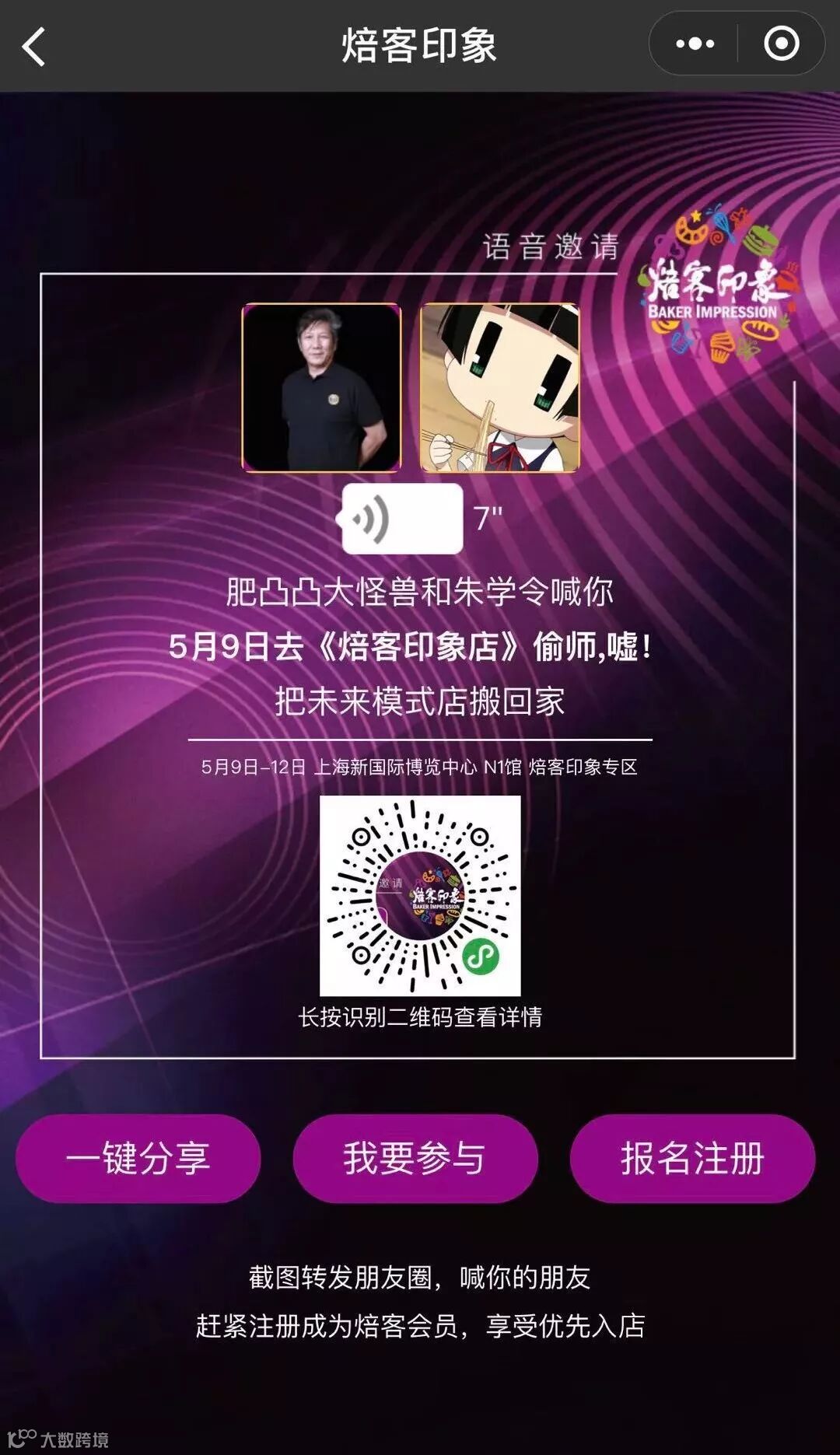 “焙客印象”将于2018年5月9日开幕,由于现场火爆,提前注册的嘉宾还可以优先进入焙客印象店哦!让我们一起提前为“焙客印象”助力!