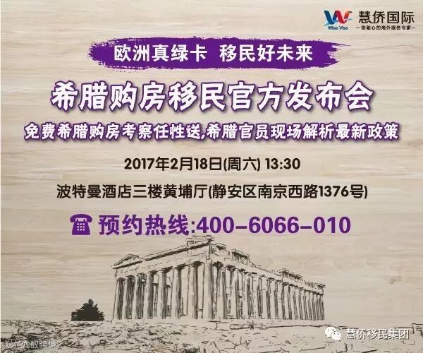 届时希腊领事会亲临现场为大家解析希腊政策。