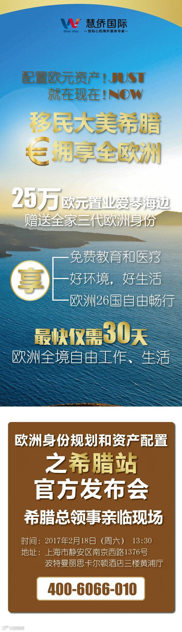 【慧 · 预告】下周六(2月18日),25万欧元=3代欧盟身份+海景房!希腊投资移民峰会为你呈现!