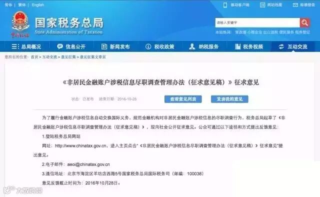 国家税务总局10月14日刚刚发布,就《非居民金融账户涉税信息尽职调查管理办法》(以下简称《管理办法》),向社会公开征求意见,意见截止到10月28日。备受瞩目的境外账户披露以及金融账户信息交换的具体办法浮出水面。