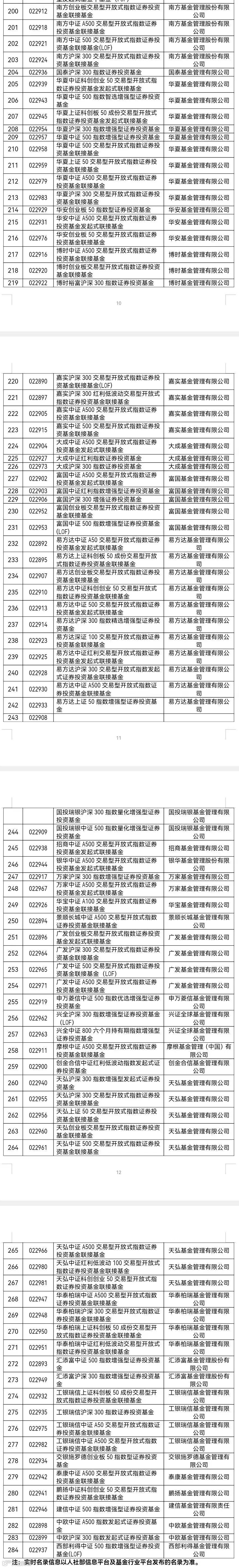 以下各列依次为:序号、基金代码、基金名称(全称)、基金管理人