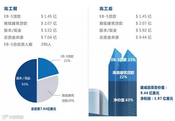 建成后如再融资,项目总负债率(包括EB-5贷款)不得超过70%,即EB-5以外的其他债务不得超过项目9.44亿美元总价值的55%,相当于约4.25亿美元项目资产价值为1.45亿美元EB-5贷款提供担保