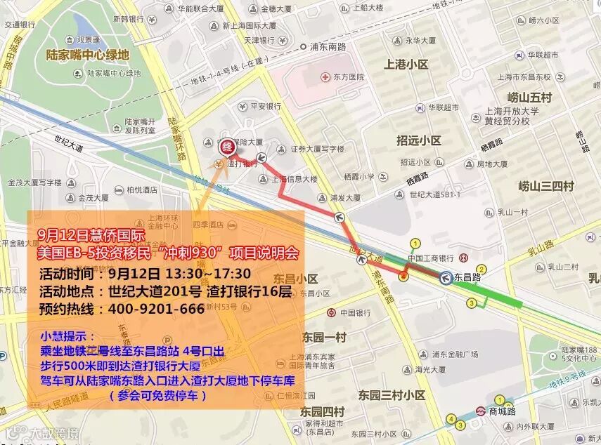 驾车可从陆家嘴东路入口进入渣打大厦地下停车库(参会可免费停车)