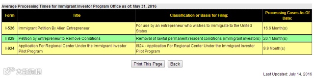 根据美国移民局在7月14日更新的审案进度显示,目前I-526的平均审批时间为16.6个月,I-829为20.1个月,I-924为9.9个月。