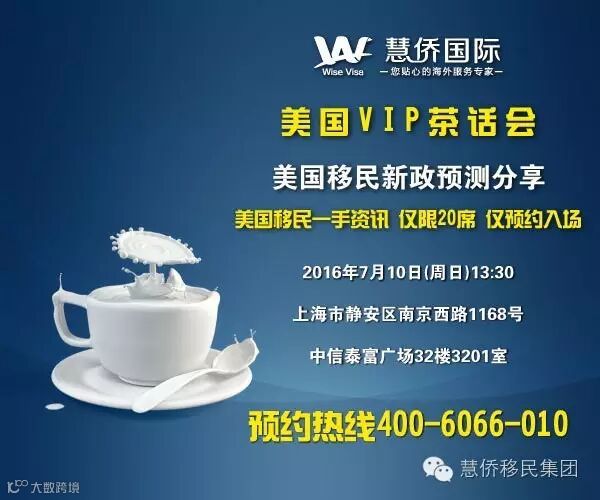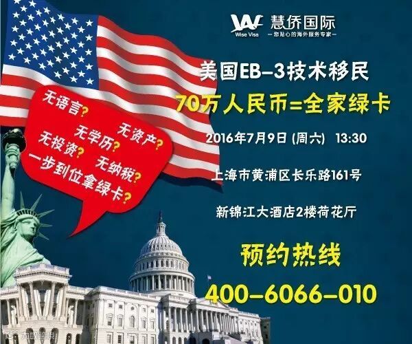 如需了解更多资讯,请预约本周日(7月10日)慧侨美国投资移民分享会。最权威的专家将给你带来美国投资移民第一手资讯和新政分析。