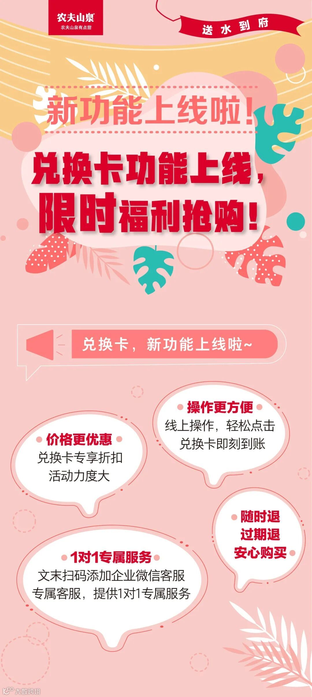 导读:送水到府,兑换卡新功能上线!一次购买,多次兑换,限时福利,立即抢购!
