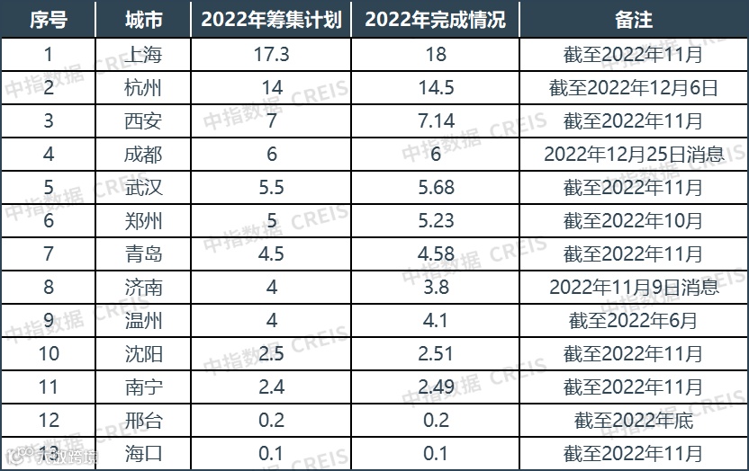 表:部分城市2022年保租房筹集计划完成情况(单位:万套)