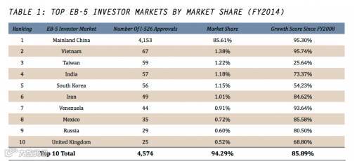 来自EB-5行业协会IIUSA的消息,本月3日最新的EB-5投资者来源地报告显示,1992-2014财年,中国大陆累计13,392个家庭获得EB-5签证,远远超过世界其他国家。