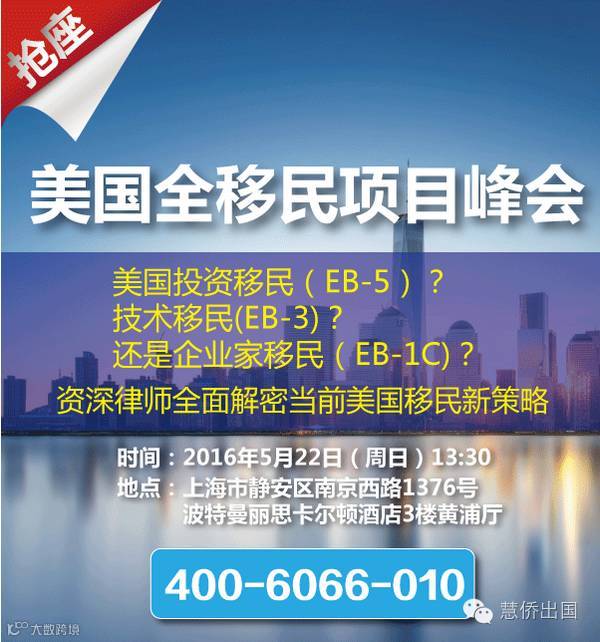 微信订位:微信直接回复“美国全移民+姓名+手机“