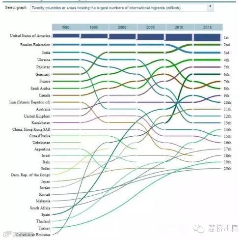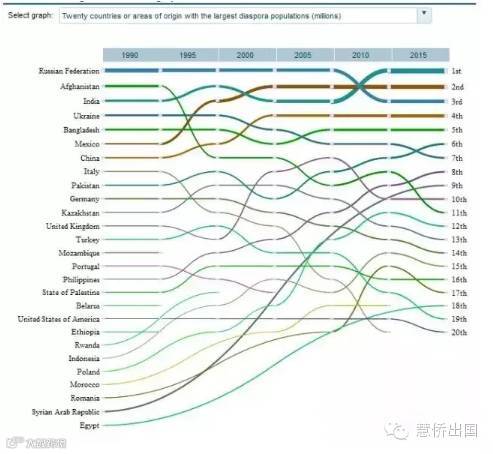 可以看出,目前,国际移民居住最多的国家是美国,约4700万人,占世界移民总数的五分之一!从国际移民的出生地来看,印度是最大的移民输出国,中国排在第四位,有1000万人。
