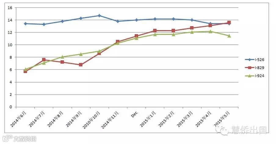 2. I-829的审批速度,最近一年都是一个上升曲线,越来越慢,这个月开始已经彻底赶上I-526,前几年项目的大量申请,现在已经到了I-829的审批阶段了,而且预计会继续变缓,从此I-829审批慢过I-526还真可能会变为新常态。