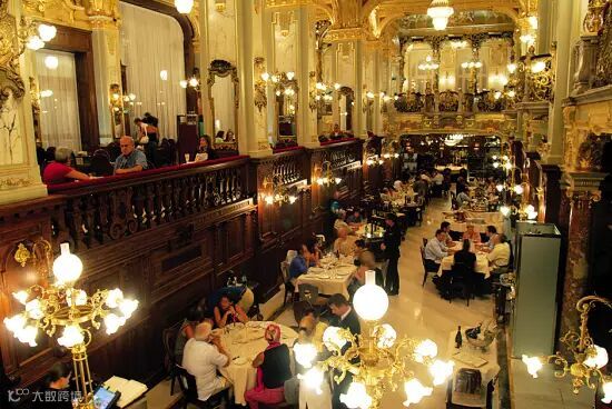咖啡馆当初是匈牙利文人的聚集地,据说当时许多匈牙利作家每天都会来固定的咖啡馆,坐固定的座位,他们的许多作品就在这里完成。最有趣的是,那时候作家们名片上的地址都习惯不写自己的住处,而是写着自己钟爱的咖啡馆的名字,这里就好像是他的第二个家,如果人们找他们有事情,来咖啡馆就可以了。