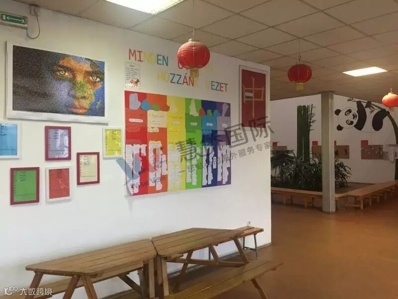 中匈双语学校环境优美,教室里设施齐备,餐厅明亮整洁,随处可见红灯笼、中国结等装饰品,中国氛围很浓。郭家明副校长介绍说,中匈两国政府都给予了学校巨大的支持。布达佩斯政府将以前的印刷业技校校园免费供中匈双语学校使用50年,学校每年可以从匈牙利政府得到预算的60%。中国政府提供了很多电教设备、电脑和教材。