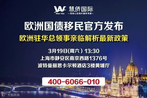 看了这么多匈牙利前线发来的一手照片,欧式风格的各种建筑,艺术氛围的浓厚,闲适的欧洲生活。。。这些有没有燃起你匈牙利国债移民的激情?本周六(3月19日13:30),慧侨国际将举办欧洲国债移民发布会——匈牙利专场,欧洲驻上海大使将亲临现场~有兴趣的小伙伴们抓紧抢占前排位子啦!免费预约热线:400-6066-010