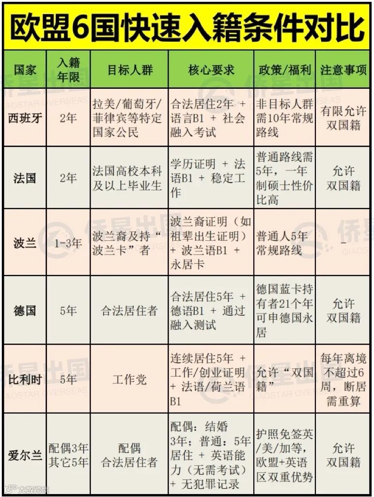 想拿欧盟国籍?别再被各种“神秘渠道”“一夜入籍”忽悠了!其实,欧洲真的有国家最快2年就能入籍,而且是写在法律里的那种!小编帮你整理了6个目前最快拿欧盟国籍的国家,包括适合人群、硬性条件和关键避坑点,看完你就知道自己能不能“对号入座”。