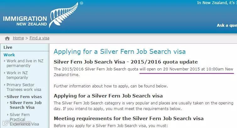 2010年,新西兰移民局推出一项求职工作签证——银蕨签证(Silver Fern Visa),旨在为新西兰招募年轻、具有熟练技能的海外人才。