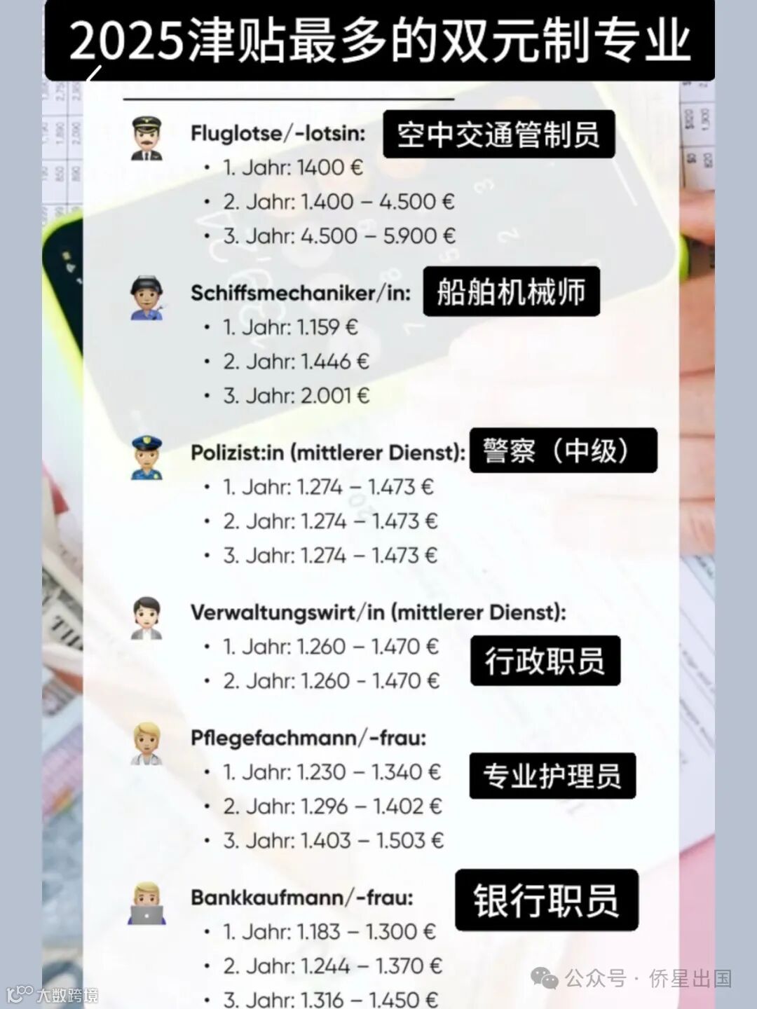 双元制职业培训是一种专注于职业技能培训的德国教育模式,也是成本最低的移民德国方式。申请人在完成双元制后将获得德国IHK或HWK职业资格证书,并在德国工作两年后即可获得德国永居。在双元制职业培训期间,约70%的时间在企业进行实践操作,30%的时间在学校学习理论知识,同时获得相应的工资津贴。让我们来看一下2025德国工资津贴最多的双元制专业都有哪些?