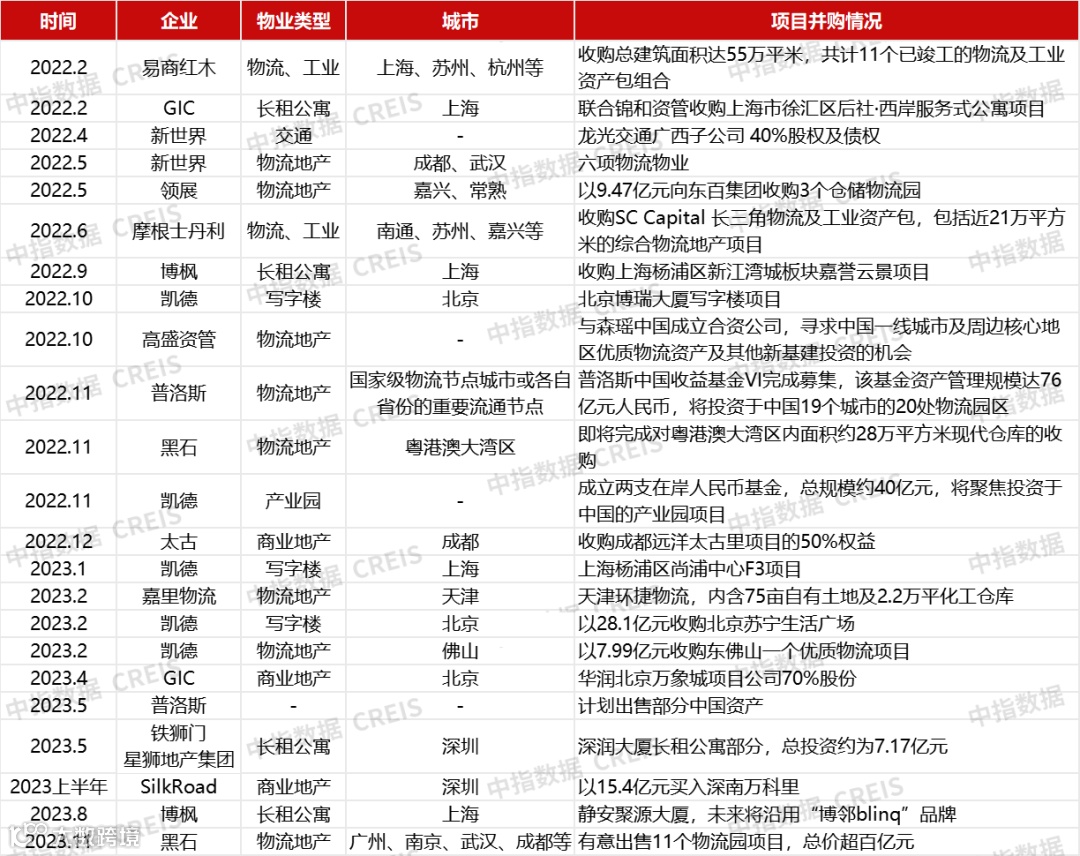 表:2022年以来外资在中国内地并购持有经营性物业情况